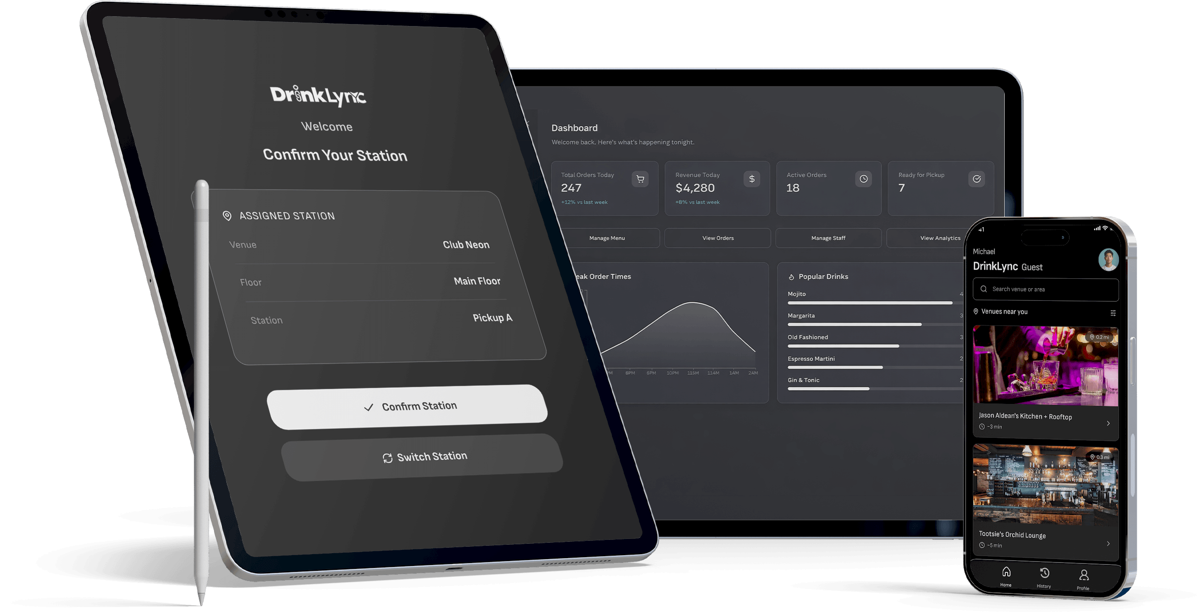 DrinkLync gives high-volume bars and venues one smarter system for ordering, live queue flow, pickup control, and venue visibility.